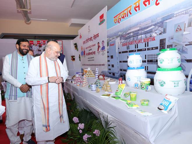 OCT 03: Union Home Minister and Minister of Cooperation, Shri Amit Shah, today inaugurated the Sabar Dairy Plant in Rohtak, Haryana, in the presence of Haryana CM Nayab Singh Saini, Union Ministers Krishan Pal Gurjar and Rao Inderjit Singh, among other dignitaries.