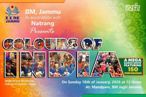 Jan 19: In a vibrant celebration of India’s rich and diverse cultural legacy, IIM Jammu, in collaboration with renowned theatre and cultural organisation Natrang, is set to present ‘Colours of India’, a mega dance production that will showcase the artistic soul of Bharat through movement, rhythm and expression.
