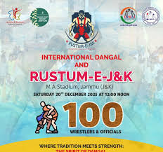 DEC 22: Jammu & Kashmir is set to witness a historic moment in its sporting journey as it prepares to host its first-ever International Indian Style Wrestling (Dangal) event, along with the prestigious Rustam-e-Jammu Kashmir Title 2025, at the iconic Maulana Azad Stadium, Jammu.