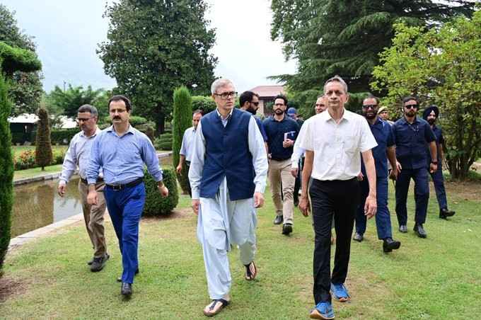 AUG 12: Jammu and Kashmir Chief Minister Omar Abdullah today carried out an on-the-spot review of the ongoing restoration works at the historic Shalimar Garden in Srinagar. The restoration project is being implemented under the Corporate Social Responsibility (CSR) initiative of the JSW Foundation, with the aim of reviving the centuries-old Mughal-era landmark while enhancing facilities for visitors.